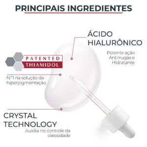 Eucerin Anti-Pigment Sérum Ultraleve é um produto clareador ideal para a redução e prevenção de manchas, desenvolvido com Thiamidol, um ativo reconhecido pelos dermatologistas como o mais eficaz e o único comprovado por atuar na causa raiz das manchas. Sua fórmula também contêm Ácido Hialurônico, que ajuda a preencher rugas e linhas finas, e Crystal Technology, que controla a oleosidade.